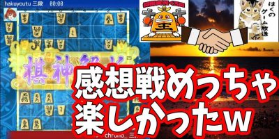 三番勝負それぞれを通話しながら感想戦!【クロノ vs はく】[ゲーム実況by将棋実況チャンネル【クロノ】] 2017年9月28日 0 comment 三番勝負それぞれを通話しながら感想戦!【クロノ vs はく】 Read More >>
